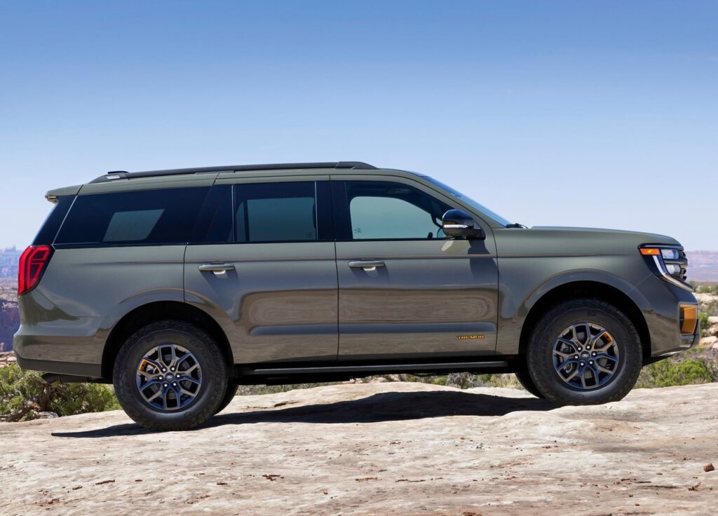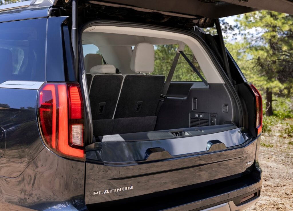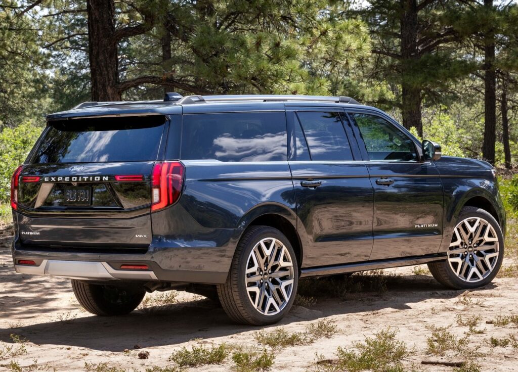 차체 크기 역시 광활합니다. 기본 모델의 전장은 5,331mm, 휠베이스는 3,112mm에 달하며, 롱보디 모델인 익스페디션 맥스(MAX)는 전장이 무려 5,631mm까지 늘어납니다. 특히 이번 풀체인지에서 처음 선보인 ‘포드 스플릿 게이트(Ford Split Gate)’는 트렁크 상하단이 분리되어 열리는 방식으로, 하단 테일게이트는 최대 227kg까지 견딜 수 있어 야외 활동 시 벤치로 활용하거나 무거운 짐을 싣기에 최적화되었습니다.