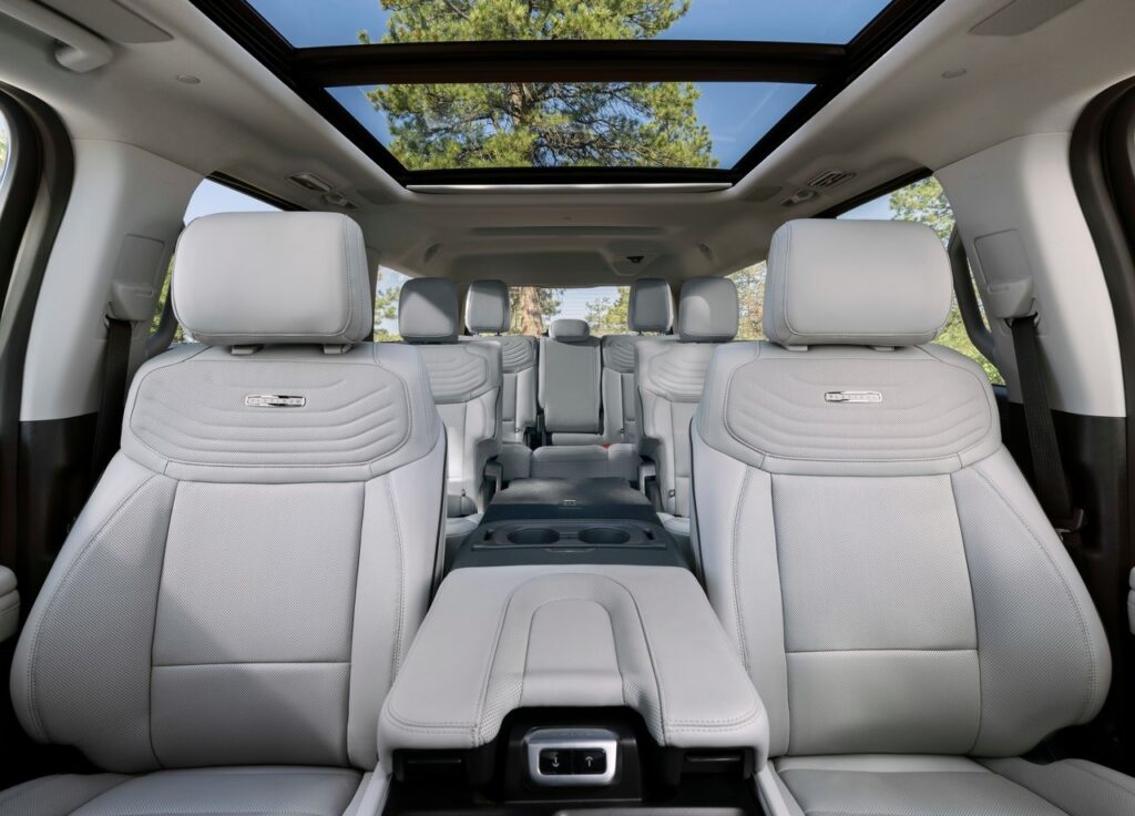 또한, 센터 콘솔이 전후로 슬라이딩되는 ‘플렉스 파워 콘솔(Flex Power Console)’이 적용되어 1열 사용자는 물론 2열 탑승객도 수납 공간을 유연하게 공유할 수 있습니다. 전 좌석에는 넉넉한 컵홀더와 USB 포트가 배치되어 있으며, 거대한 파노라마 비스타 루프는 3열 탑승객에게까지 탁 트인 개방감을 선사합니다. 안전 사양으로는 포드의 최신 주행 보조 시스템인 ‘포드 코-파일럿360’이 기본 탑재되어 차선 유지, 긴급 제동, 어댑티브 크루즈 컨트롤 등을 통해 가족의 안전을 지킵니다.